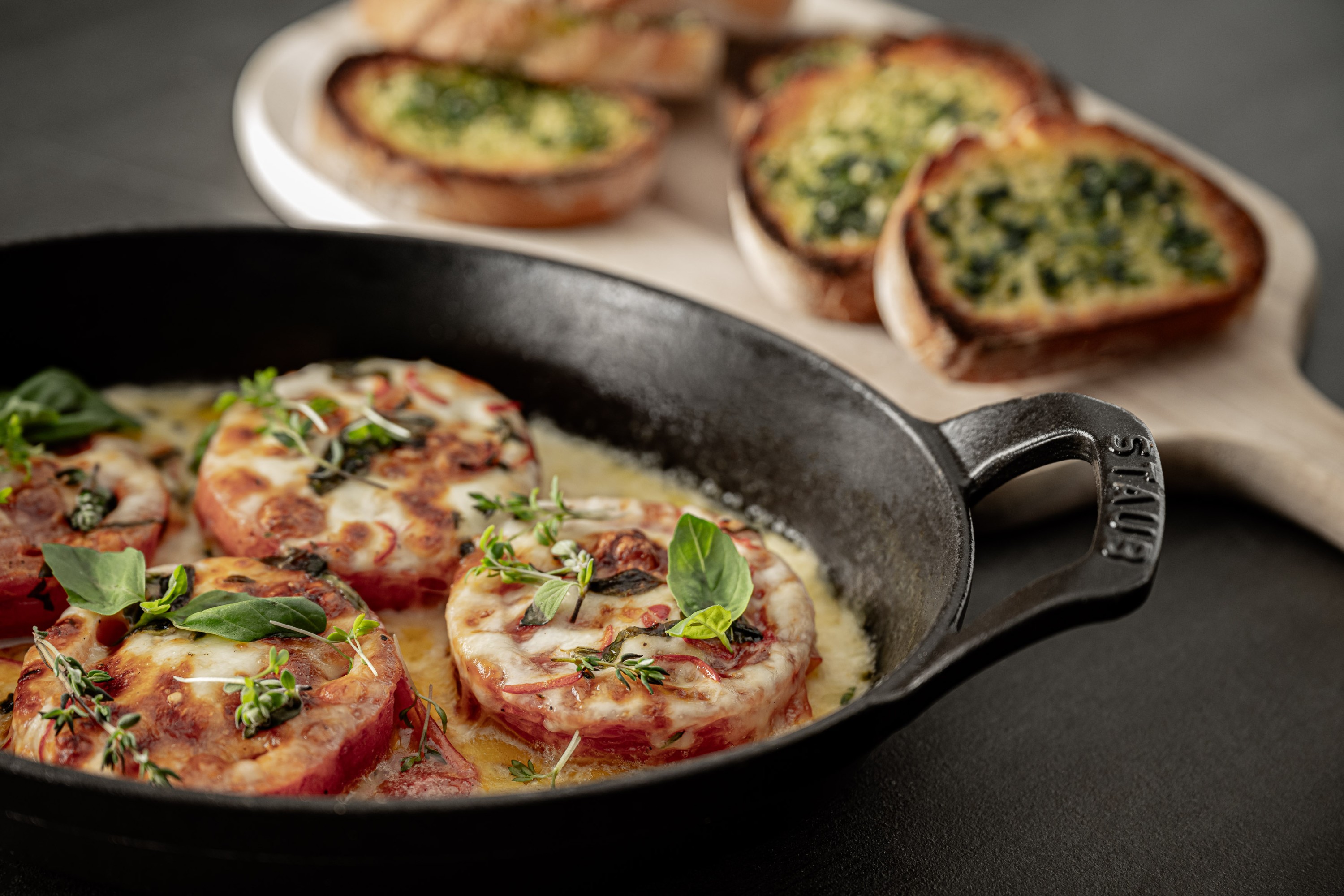 Pomodori di manzo gratinati al fuoco con peperoncino basco